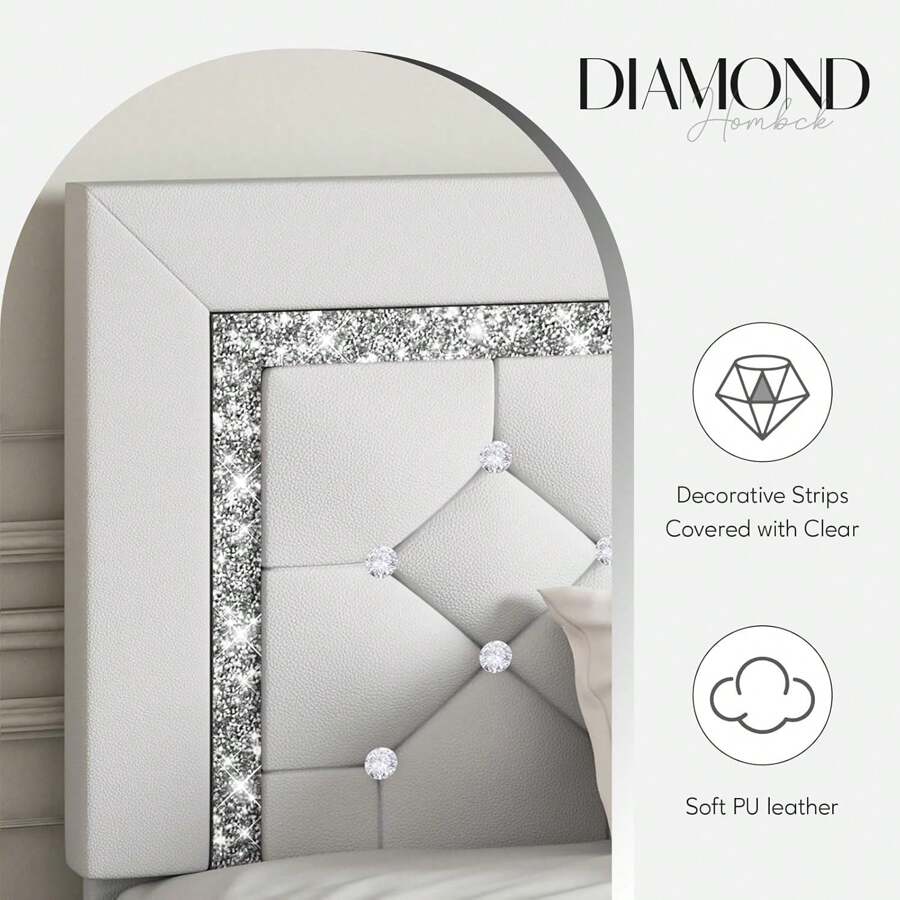 Twin/ Full/ Queen/ King Size Bed Frame, Upholstered Bed Frame With Diamond Headboard And Footboard, White/ Beige/ Black/ Grey/ Pink/ Purple/ Green