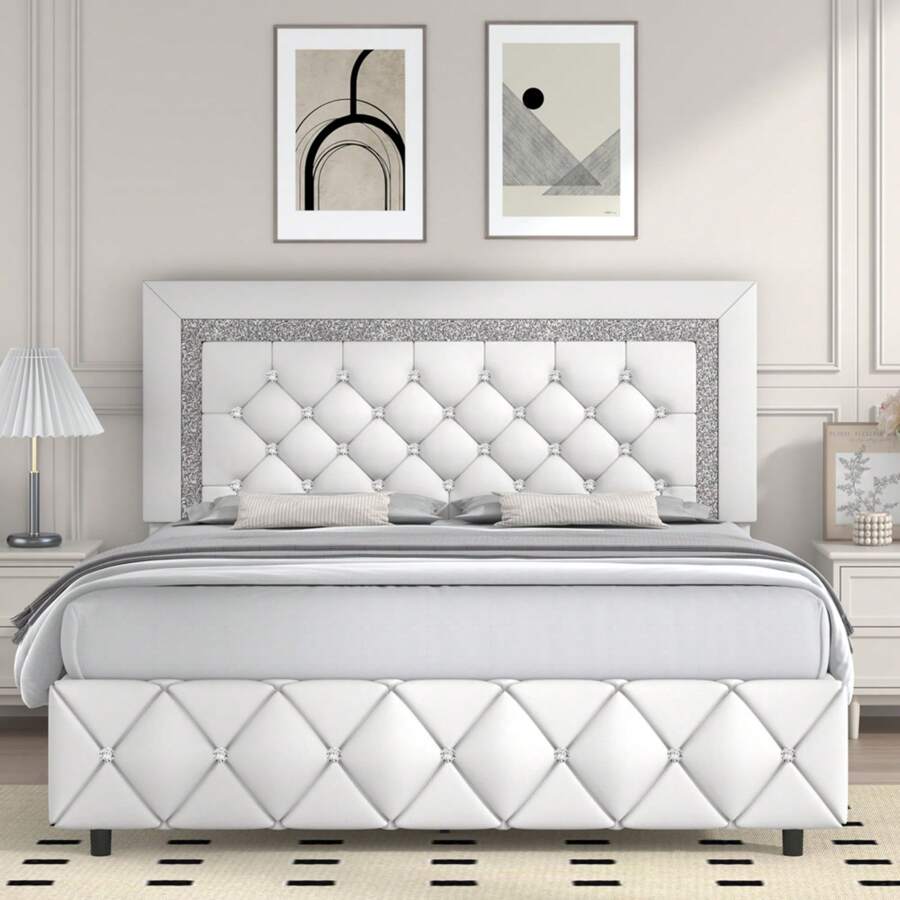 Upholstered LED Bed Frame: Diamond Tufted, Headboard & Footboard. Sizes: Twin/Full/Queen/King. Colors: Pink/Black/White/Purple/Yellow. Storage: Twin(2)/Others(4) drawers. No box spring needed.