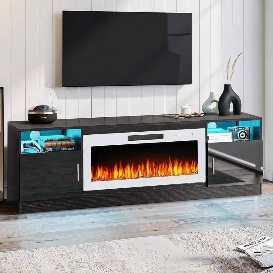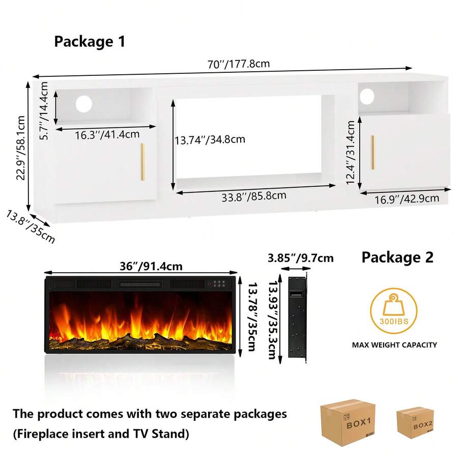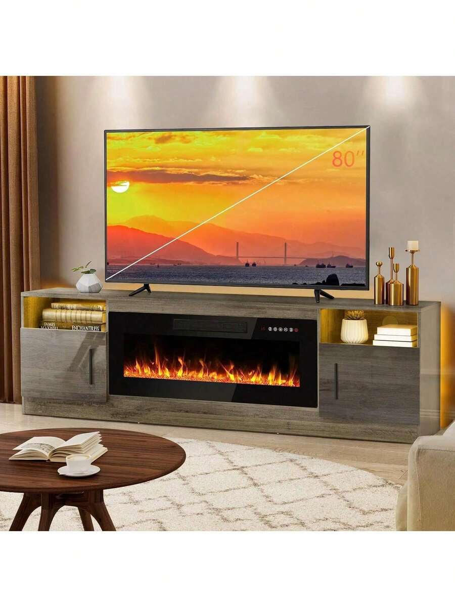 2-IN-1 TV Stand & Fireplace: 70" stand with 36" electric fireplace for TVs up to 80", offering stable viewing & customizable flame colors/dimmer.