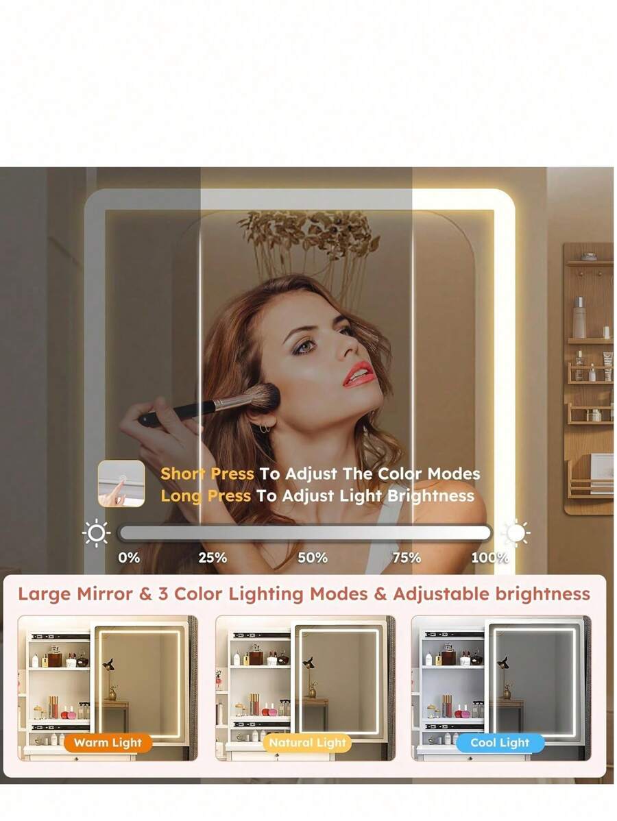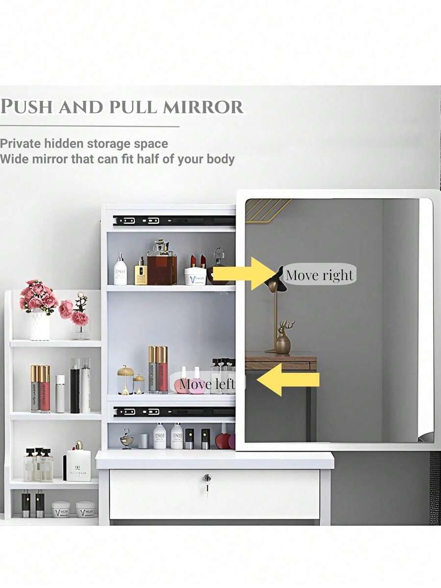 Click [Add to Cart] Now – Your Dream Vanity Awaits! Style:Modern, Trendy Scenes:Bedroom Power supply: wall plug Color:Vanity Desk With Stool Material:MDF