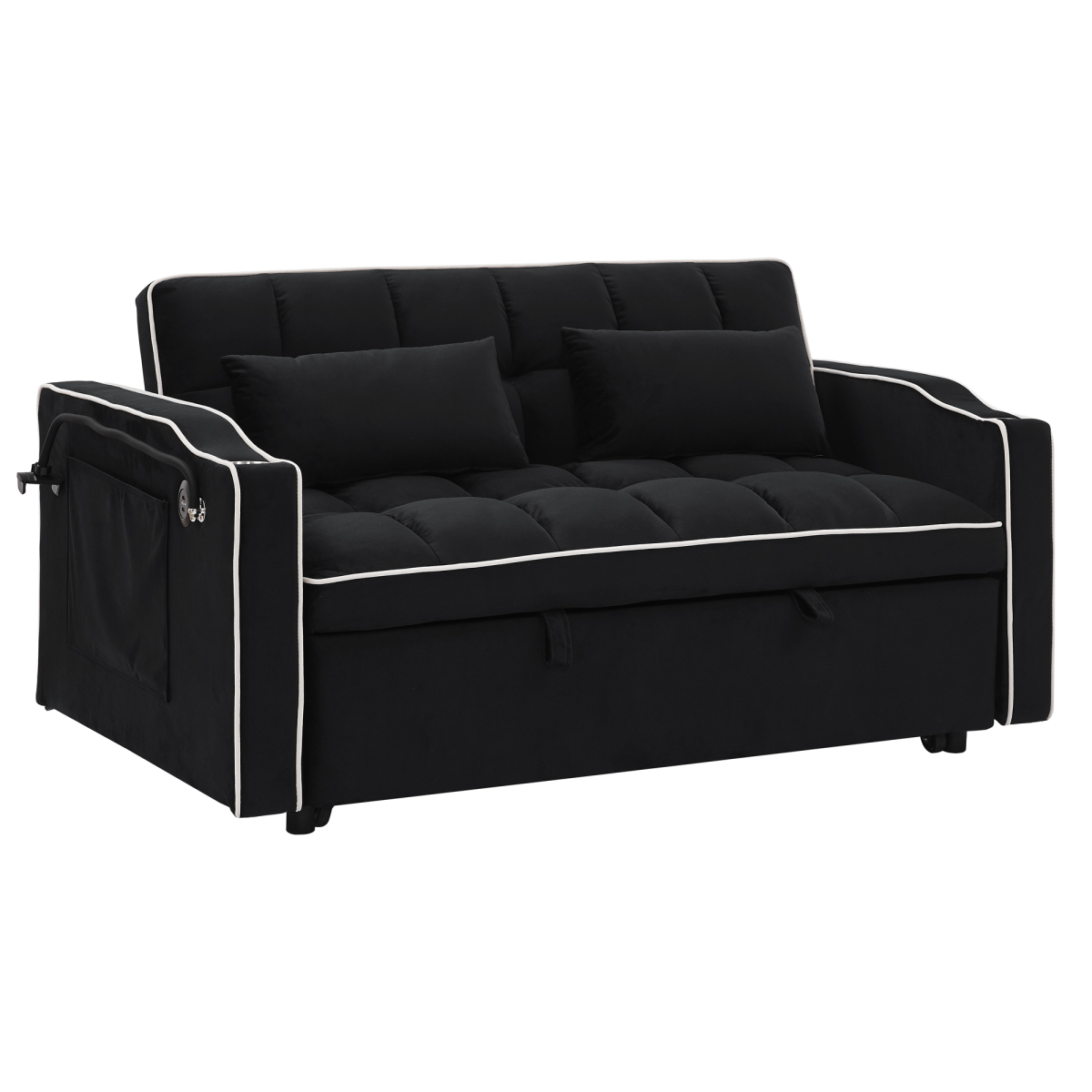 55.51 inch versatile foldable sofa bed in 3 lengths, modern sofa sofa sofa velvet pull-out bed, adjustable back and with USB port and ashtray and swivel phone stand (Black)