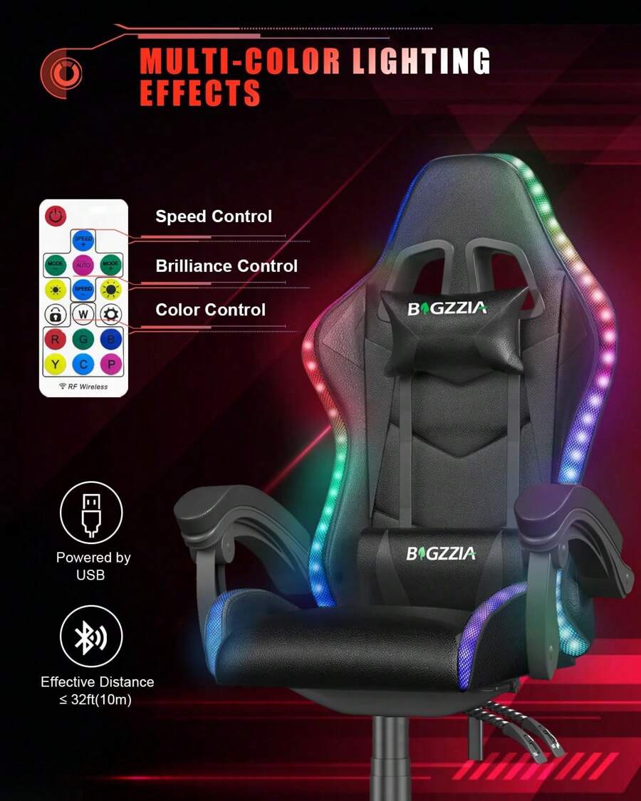 Custom RGB LED Lighting: Elevate your gaming setup with our gaming chair featuring custom RGB LED colors and modes.This chair brings a unique glow, adding style and sophistication that will impress your friends and enhance your gaming environment.