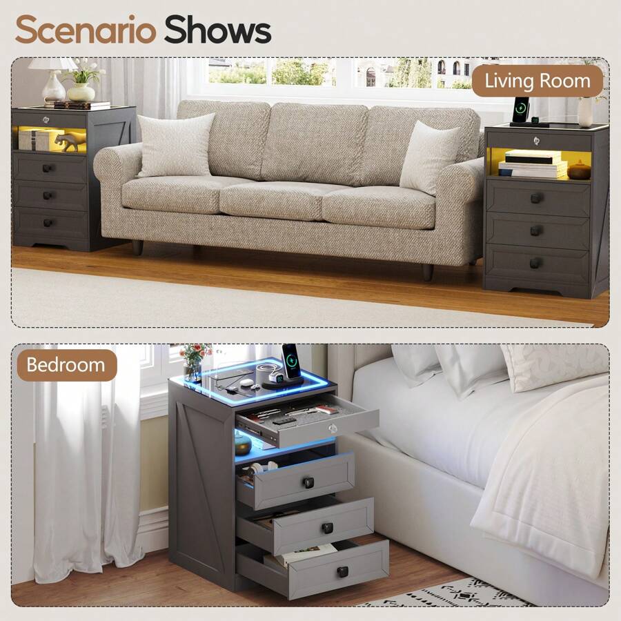 Spacious Storage Space:Modern nightstand Featuring 3 spacious drawers,an open storage area,gun compartment drawer, provides ample storage space for your personal belongings,offering ample space for your storage needs! The perfect choice for your bedroom, living room, or office space