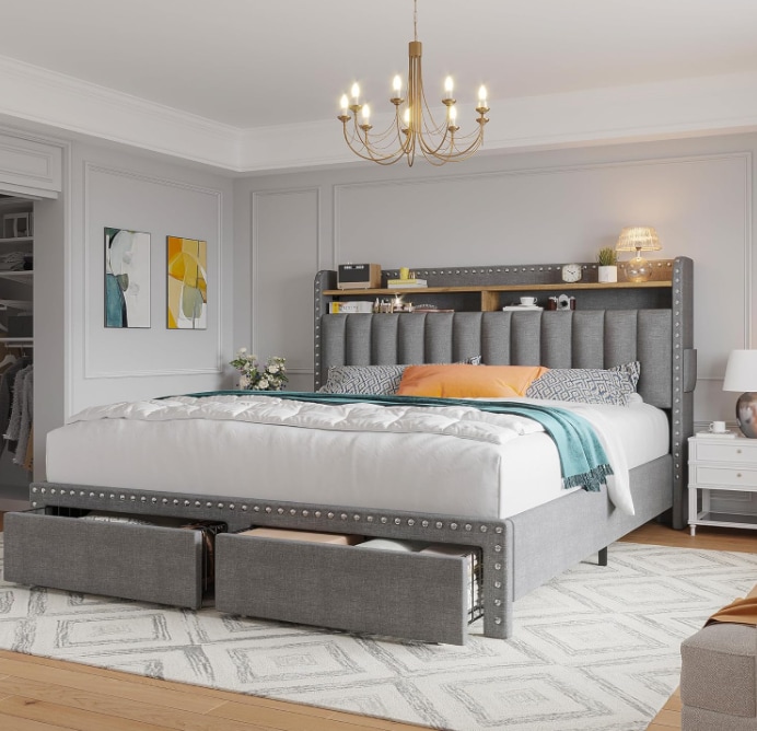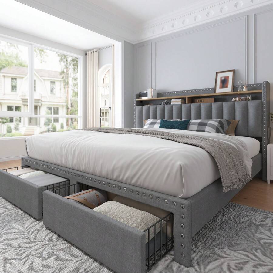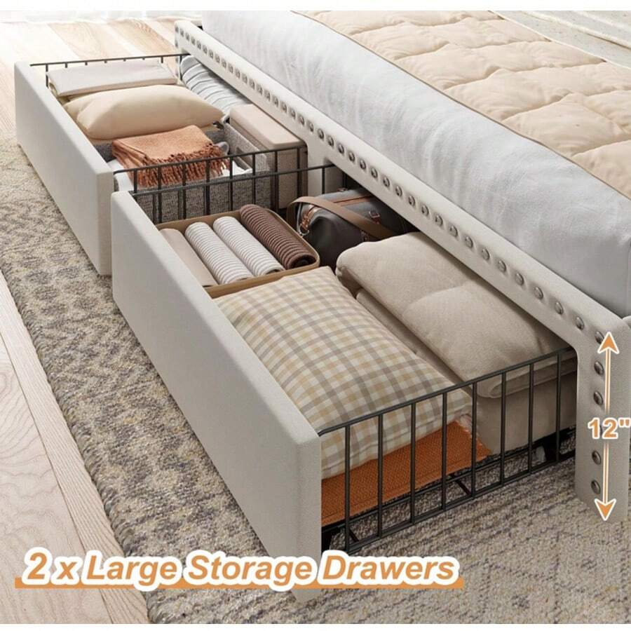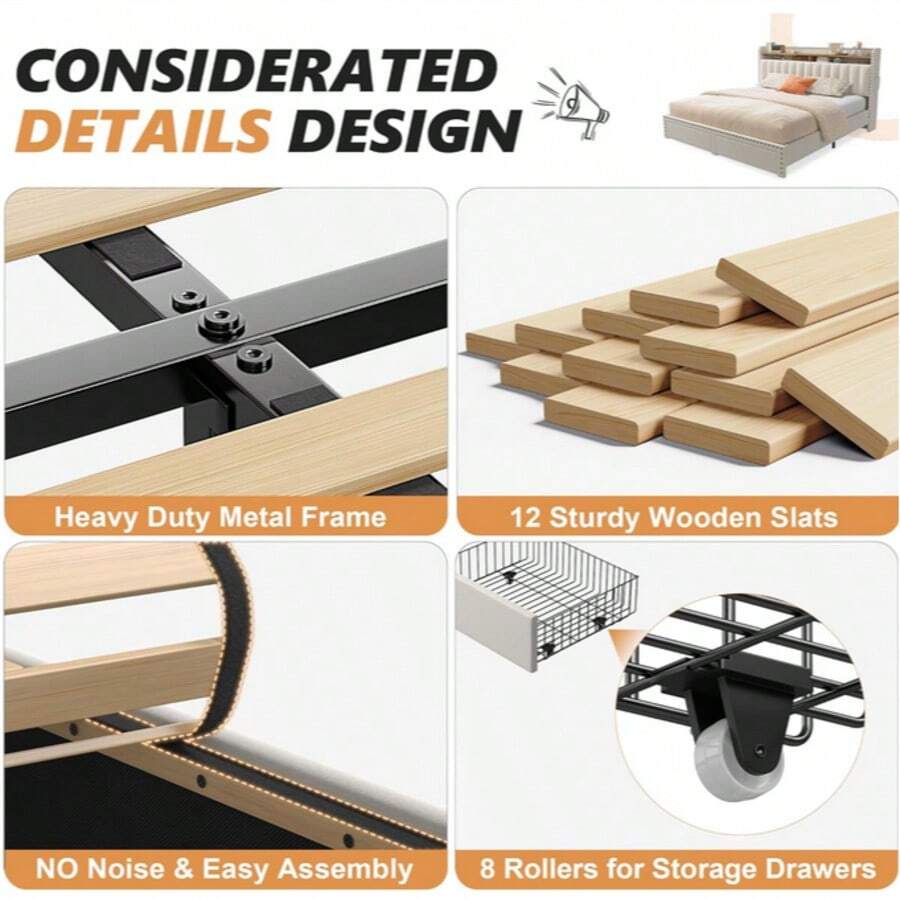 Scenes:Home, Bedroom, Daily, Household, Room Included Components:Storage Drawer, Installation Manual, Slats, Headboard, Casters Style:Modern, European Style Power Supply:None Color:Beige Material:Wood