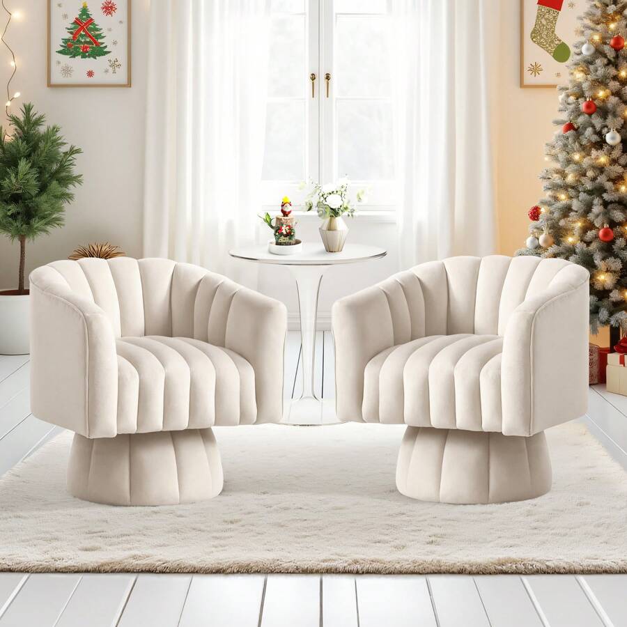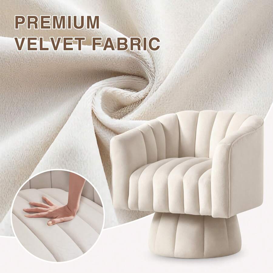 [360-Degree Swivel]The Swivel Barrel Chair, is designed to elevate your seating experience with exceptional 360-degree swivel function.The chair's swivel mechanism is smooth, adding an element of fun to your relaxation time.Picture yourself at the end of a long day, sinking into the soft, cushioned seat, and effortlessly pivoting to find the perfect position for your activities.Whether you're reading a book, watching TV, or simply unwinding, the Swivel Barrel Chair adapts to your needs. [Solid Construction]Our swivel barrel chair features a sturdy metal swivel base and hardwood frame. Designed to easily support up to 440 pounds and provide solid stability, it ensures a secure seating experience. The swivel chair is built to last, ensuring you'll enjoy its comfort and versatility for years. Whether you're lounging at home, entertaining guests, or improving your office environment, this chair is the great choice to take your seating experience to the next level. [Premium Materials]The swivel accent chair is made of premium velvet fabric, adding elegance and sophistication to your space.The velvet fabric is not only beautiful but is also extremely soft and durable, ensuring long-lasting comfort and visual appeal.Our swivel chair is carefully designed with modern ergonomics in mind.The wraparound backrest provides excellent support, while the highly resilient sponge provides exceptional comfort, making it a perfect place to relax after a long day. [Multi-scene application] This swivel armchair has a modern aesthetic that can be easily coordinated with your room decoration, adding playability to your space.Whether as an elegant decoration next to the fireplace, a cozy bedroom reading corner, a comfortable seat in the hotel lounge, or relaxing while watching TV in the living room, its adaptable design can be seamlessly integrated into different environments, providing stylish and flexible placement options for your entire home or venue. [Easy & fast assembly] Our swivel barrel chair comes with installation instructions to guide you to assemble it, ensuring you can quickly complete it within 10 to 15 minutes. If you encounter any problems when assembling our products, or the product is damaged due to logistics reasons, our always here to help you solve any problems you encounter. We are committed to ensuring your satisfaction and making your shopping experience as smooth and worry-free as possible. Scenes:Home, Household Care Instructions:Spot Clean Seat/Recliner Adjustment Method:Other Back Style:Solid Back Features:Rotatable Power Supply:None Color:Beige Material:Wood